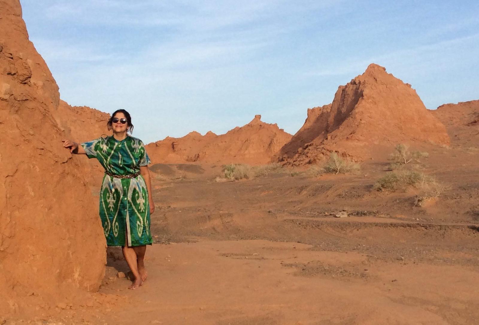В красных песчаниках Пылающих Скал были обнаружены несколько новых видов ископаемых ящеров, а также первые в истории палеонтологии гнёзда с нетронутыми яйцами динозавров. Здесь можно прогуляться и полазить по песчаниковым образованиям причудливых форм, напоминающим пейзажи каньонов американского Запада на реке Колорадо, либо просто полюбоваться космическим масштабом пустыни. Вечером совершим прогулку к “Пылающим Скалам”, когда они заполыхают алым заревом в лучах предзакатного солнца.